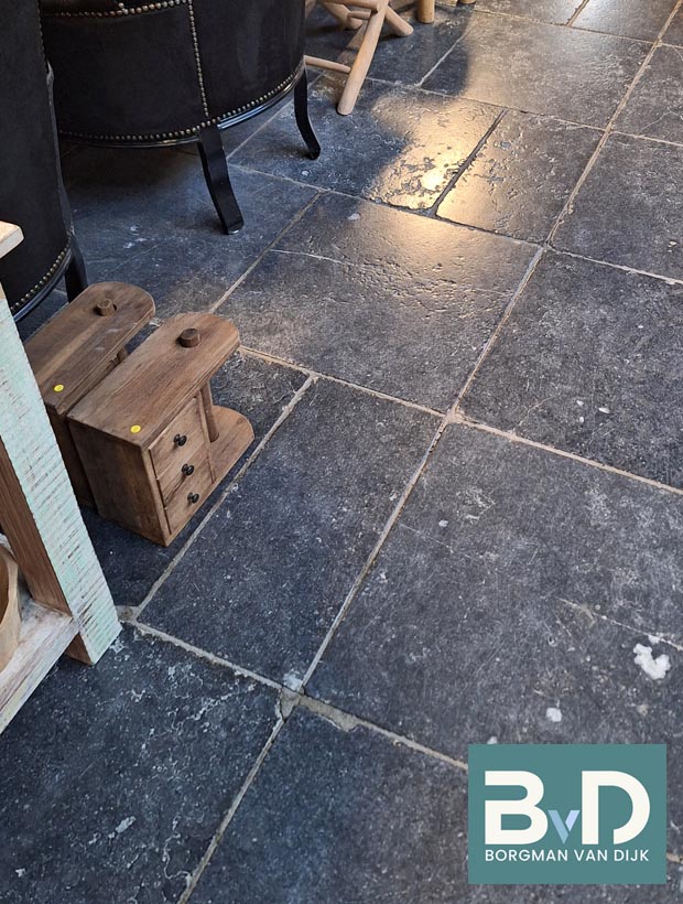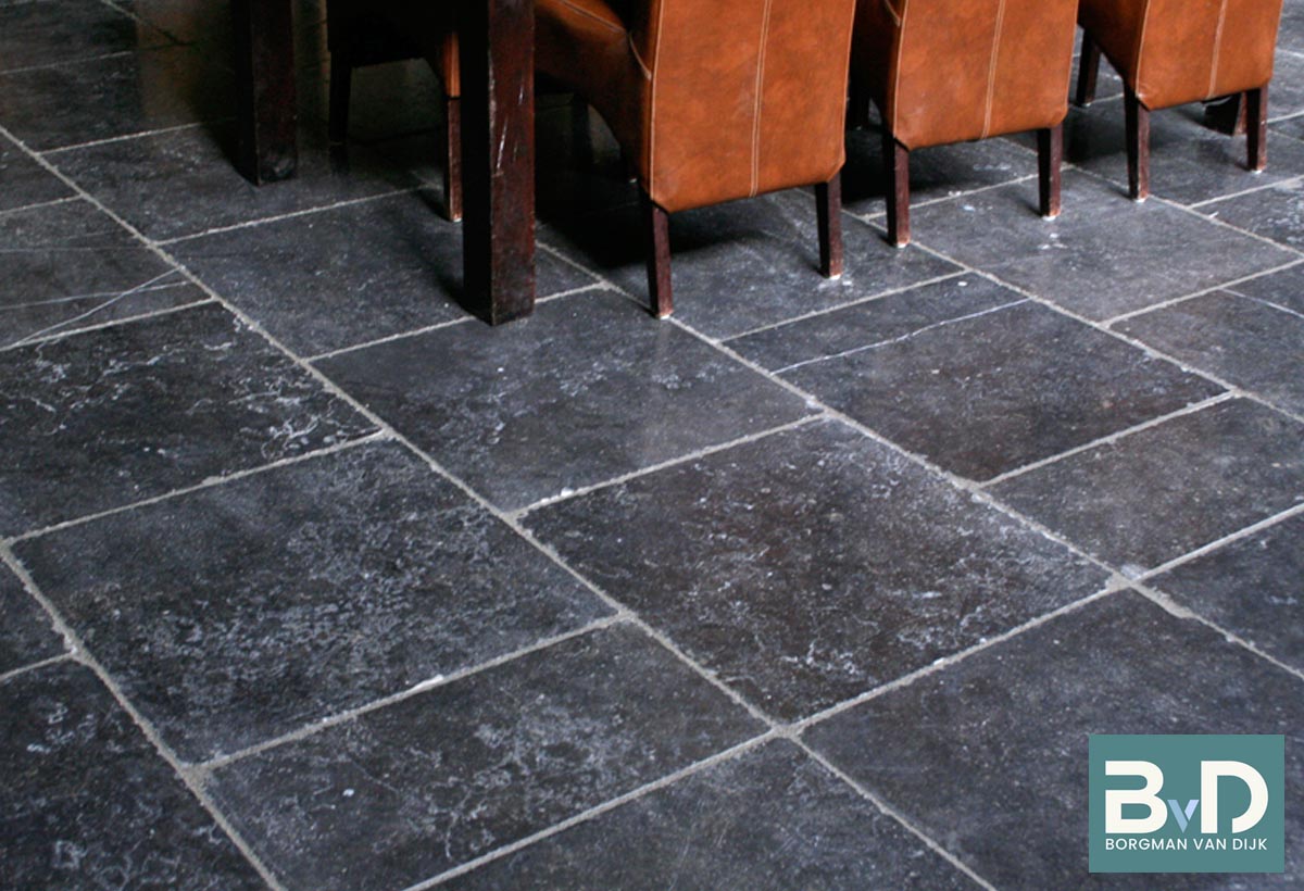 Belgische hardsteen Abdij / Antique is een sfeervolle gemêleerde hardsteen die door zijn neutrale warme kleur makkelijk te combineren is met nagenoeg alle houtsoorten, wit en grijstinten. Deze Belgische hardsteen wordt eerst geborsteld, daarna gezoet en vervolgens machinaal getrommeld. Door deze bewerking krijgt de tegel een prachtige authentieke, verouderde uitstraling. De Belgische hardsteen kan verlijmd worden met een algemene zuurvrije tegellijm. Wat voegen betreft wordt er vaak gebruik gemaakt van een grofkorrelige voeg. Dit komt de rustieke uitstraling nog meer ten goede. Het onderhoud van deze vloer is neutraal b.v. dweilen met Carolin zeep of Marseille zeep. De Belgische hardsteen Abdij / Antique wordt ook wel blauwsteen of Arduin genoemd.