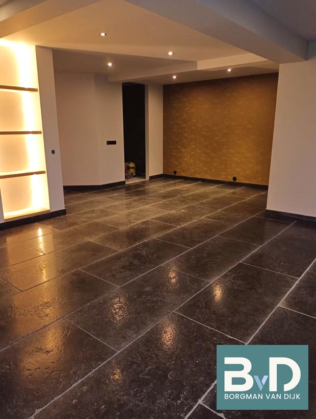 Belgische hardsteen Abdij / Antique is een sfeervolle gemêleerde hardsteen die door zijn neutrale warme kleur makkelijk te combineren is met nagenoeg alle houtsoorten, wit en grijstinten. Deze Belgische hardsteen wordt eerst geborsteld, daarna gezoet en vervolgens machinaal getrommeld. Door deze bewerking krijgt de tegel een prachtige authentieke, verouderde uitstraling. De Belgische hardsteen kan verlijmd worden met een algemene zuurvrije tegellijm. Wat voegen betreft wordt er vaak gebruik gemaakt van een grofkorrelige voeg. Dit komt de rustieke uitstraling nog meer ten goede. Het onderhoud van deze vloer is neutraal b.v. dweilen met Carolin zeep of Marseille zeep. De Belgische hardsteen Abdij / Antique wordt ook wel blauwsteen of Arduin genoemd.