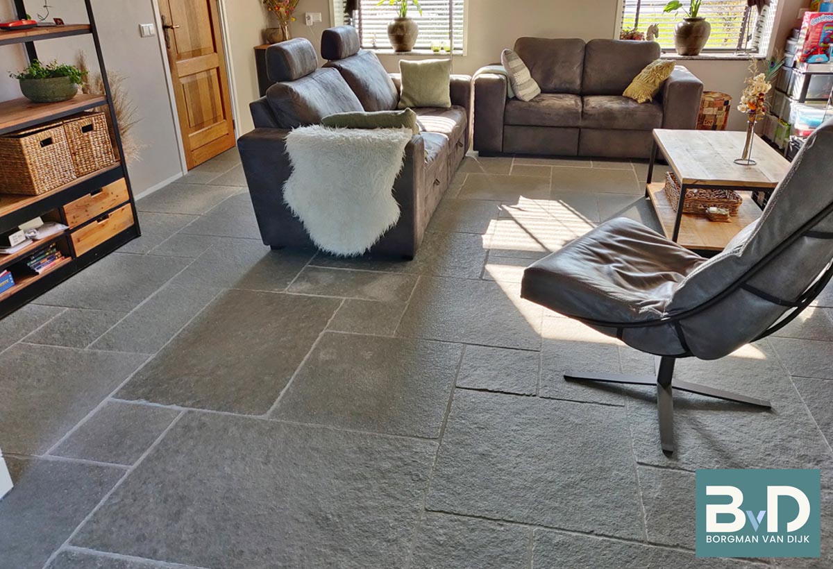 De Castle Stone Yellow Antique (Tandur Yellow) is een harde kalsteen uit India. De prachtige kleurnuances bestaan uit beige, gele, geelgroene, okergele, zandgele en oranjegele tinten. De breukruwe tegels worden geschuurd/geborsteld en de randen handgekapt. Vervolgens worden deze bewerkte tegels gevi...