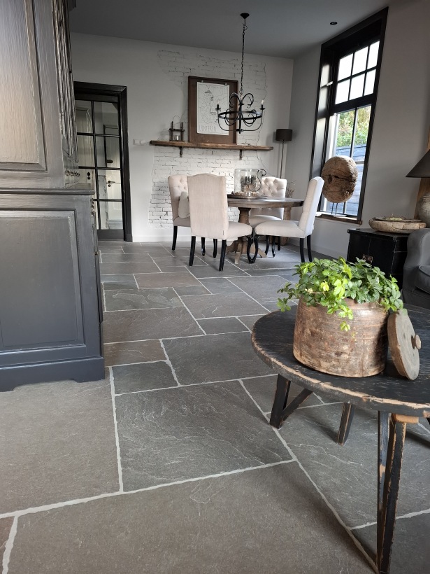 Bourgondische Dallen Chateau Beige Antique 60x90x2,2 cm De Bourgondische Dallen Chateau Beige Brun Antique zijn harde kalstenen tegels uit India. De prachtige kleurnuances bestaan uit beige, gele, geelgroene, okergele, zandgele en bruingele tinten. De breukruwe tegels worden geschuurd/geborsteld en de randen handgekapt. Vervolgens worden deze bewerk...