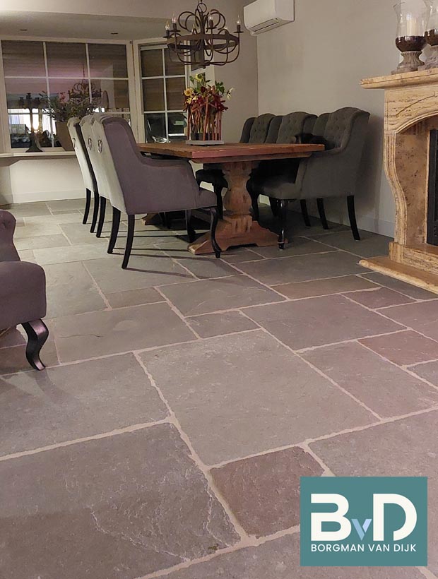 Bourgondische Dallen Chateau Beige Antique 60x90x2,2 cm De Bourgondische Dallen Chateau Beige Brun Antique zijn harde kalstenen tegels uit India. De prachtige kleurnuances bestaan uit beige, gele, geelgroene, okergele, zandgele en bruingele tinten. De breukruwe tegels worden geschuurd/geborsteld en de randen handgekapt. Vervolgens worden deze bewerk...