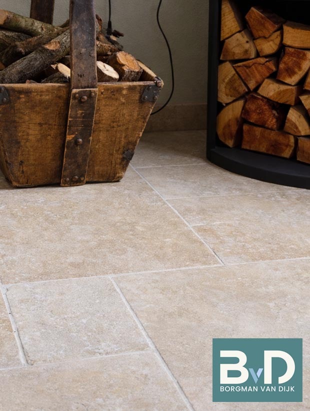 Bourgondische Dallen Chateau Beige Antique 60x90x2,2 cm De Bourgondische Dallen Chateau Beige Brun Antique zijn harde kalstenen tegels uit India. De prachtige kleurnuances bestaan uit beige, gele, geelgroene, okergele, zandgele en bruingele tinten. De breukruwe tegels worden geschuurd/geborsteld en de randen handgekapt. Vervolgens worden deze bewerk...