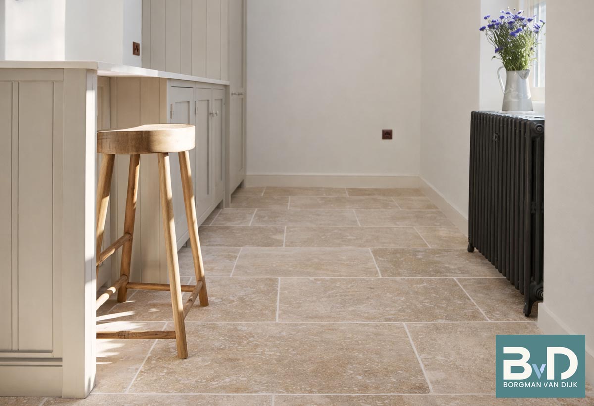 Bourgondische Dallen Chateau Beige Antique 60x90x2,2 cm De Bourgondische Dallen Chateau Beige Brun Antique zijn harde kalstenen tegels uit India. De prachtige kleurnuances bestaan uit beige, gele, geelgroene, okergele, zandgele en bruingele tinten. De breukruwe tegels worden geschuurd/geborsteld en de randen handgekapt. Vervolgens worden deze bewerk...