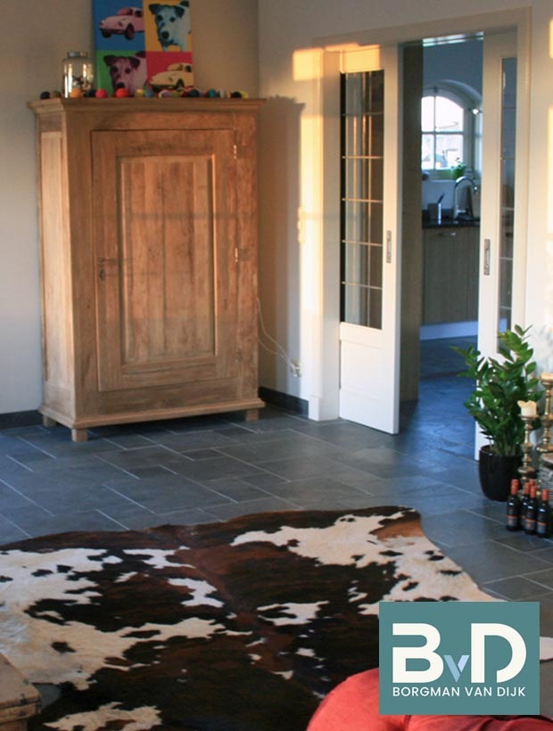 Mustang Leisteen 60x90 cm Mustang leisteen wordt geleverd met een prachtig breukruw oppervlak en een strak gezaagde randafwerking. Hierdoor is de Mustang leisteen een vloer met een behoorlijk exclusieve uitstraling. Ook de neutrale kleur van de Mustang leisteen is een groot voordeel. De antraciet / grijze kleuren van de breukruwe leisteen zijn redelijk ma...
