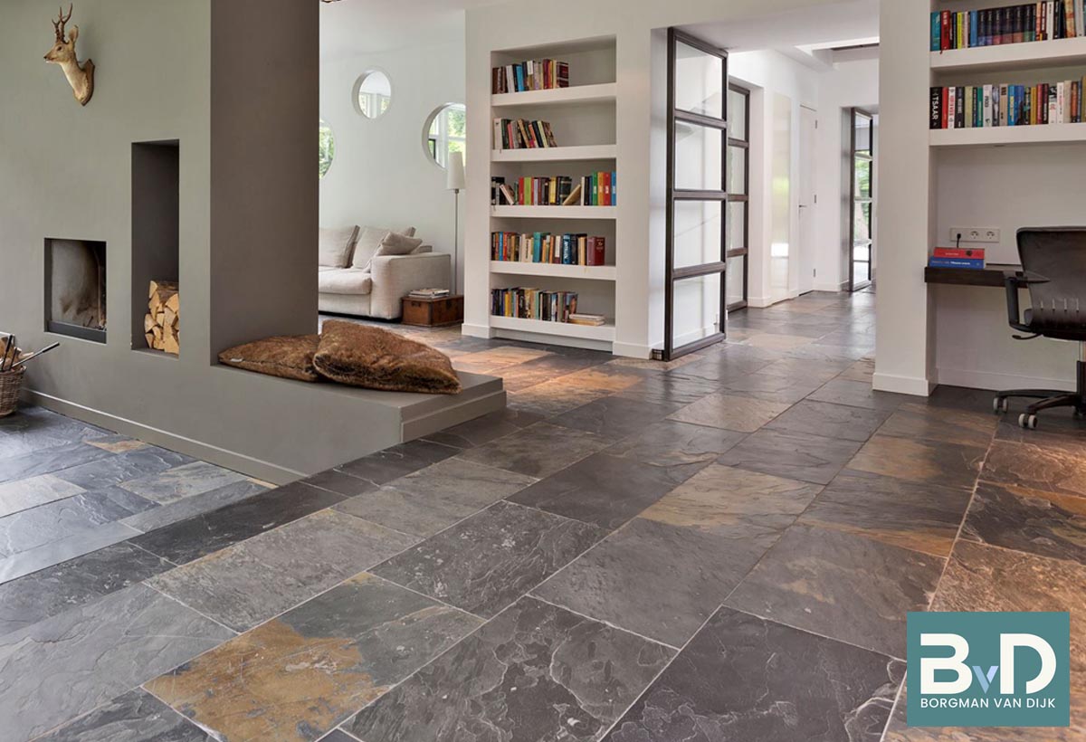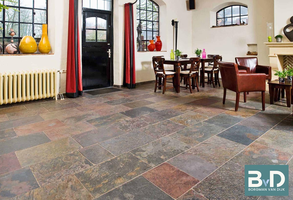 De Peacock Leisteen is een sfeervolle bontgekleurde leisteen uit India. Kenmerkend zijn de warme herfstkleuren en mooie breukruwe structuur. Door zijn robuuste en levendige uitstraling wordt deze prachtige leisteen veelvuldig toegepast bij een landelijke inrichting. Ook bij moderne huizen die wel wat sfeer en warmte kunnen gebruiken wordt van deze vloer steeds meer gebruik gemaakt. Naast het prachtige uiterlijk van deze tegel, is deze ook ontzettend makkelijk in onderhoud. Door de zeer mooie kleuraccenten ziet u haast niets op deze vloer.