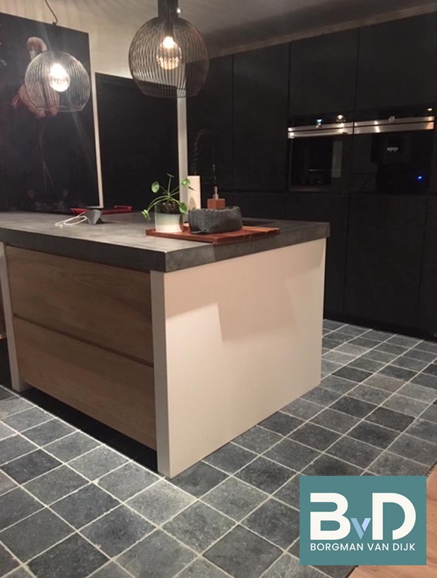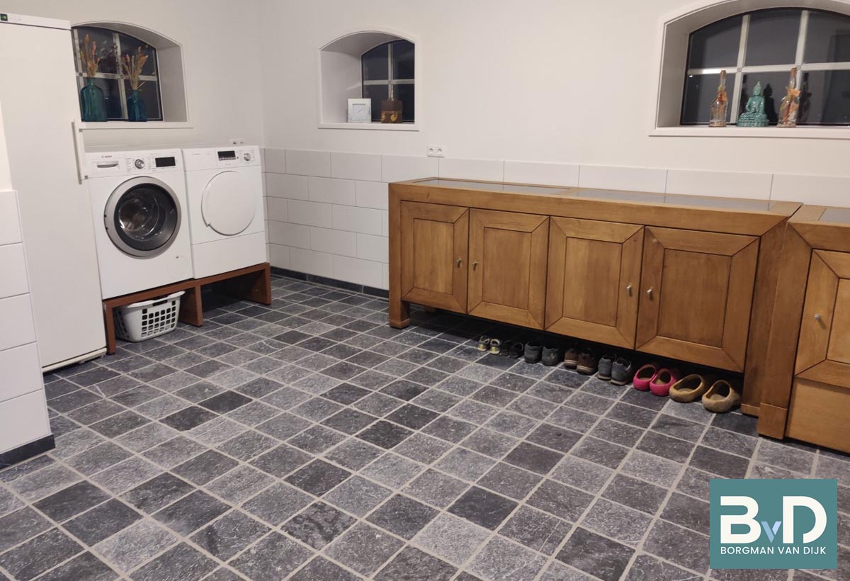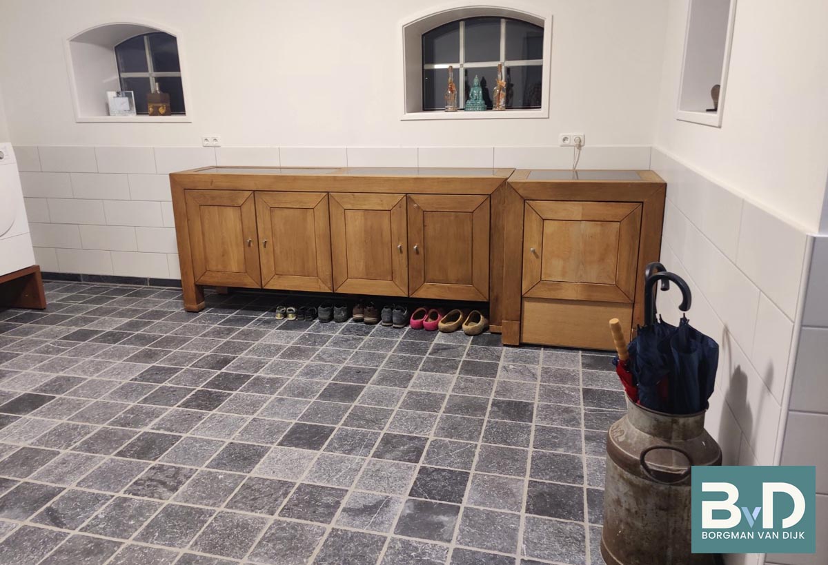 Vietnamees Hardsteen 20x20x2 cm Gezaagd / Getrommeld € 27,95 p/m2 Vietnamees hardsteen Brutto is een sfeervolle gemêleerde hardsteen die door zijn neutrale kleur makkelijk te combineren is met nagenoeg alle houtsoorten, wit en grijstinten. Deze Vietnamees hardsteen wordt gezaagd, licht geschuurd en daarna machinaal getrommeld. Door deze bewerking krij...