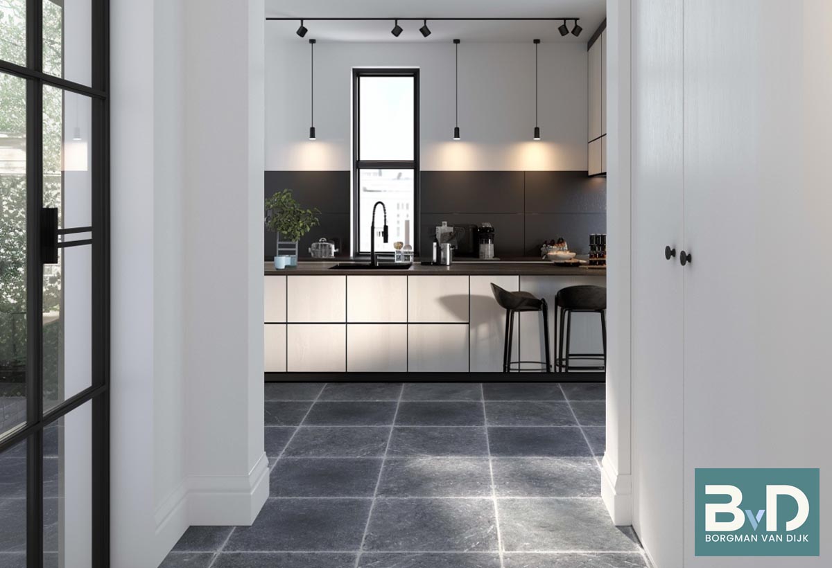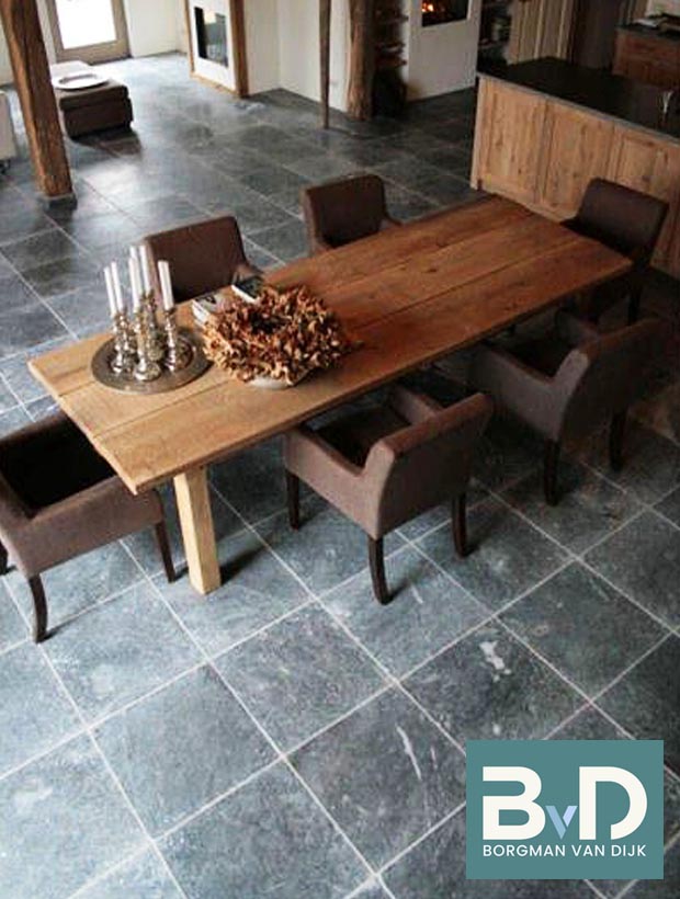 Vietnamees hardsteen Soft Finish is een sfeervolle gemêleerde hardsteen die door zijn neutrale kleur makkelijk te combineren is met nagenoeg alle houtsoorten, wit en grijstinten. Deze Vietnamees hardsteen wordt eerst gezoet en daarna machinaal getrommeld. Door deze bewerking krijgt de tegel een prachtige authentieke, verouderde uitstraling. De vietnamese hardsteen kan verlijmd worden met een algemene zuurvrije tegellijm. Wat voegen betreft wordt er vaak gebruik gemaakt van een grofkorrelige voeg. Dit komt de rustieke uitstraling nog meer ten goede. Het onderhoud van deze vloer is neutraal b.v. dweilen met Carolin zeep of Marseille zeep. De Vietnamees hardsteen Soft Finish wordt ook wel Vietnamese hardsteen Anticato of Vietnamese hardsteen Gothic genoemd.