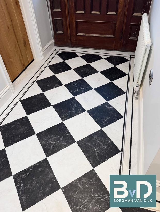 Zwart Wit marmer 10x10x1,2 cm Getrommeld € 46,95 p/m2 Topkwaliteit marmer uit Turkije. Zeer goede maatvoering en gelijk van dikte. Wordt veelal toegepast als vloer en wandtegel. Eenvoudig op maat te zagen en verwerken met een professionele witte tegellijm. Kan zowel kleurloos als kleurverdiepend worden geimpregneerd. Niet zuurbestendig en daardoor neut...