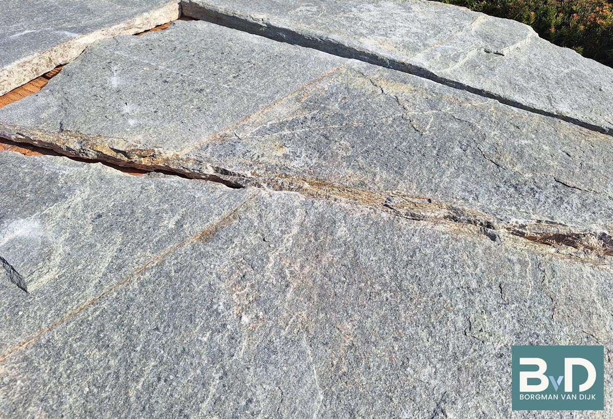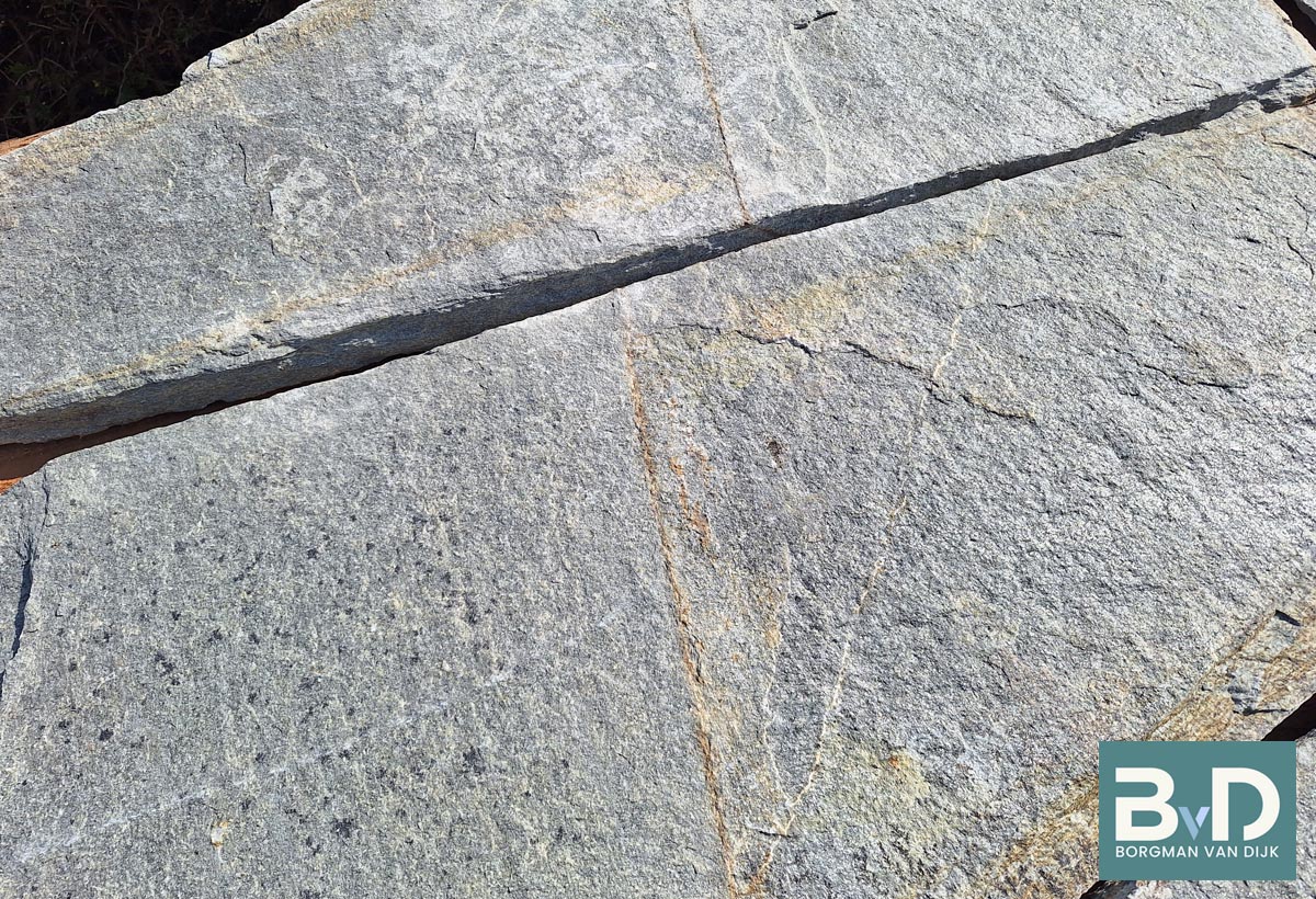Borgman van Dijk heeft het grootste en beste assortiment flagstones van Nederland. Tevens bieden wij u de scherpste prijzen inclusief btw. De populaire flagstone Kavala Grey XXL is afkomstig uit Griekenland en heeft een zeer natuurlijk en robuust oppervlak. Deze stoere / harde flagstone leveren wij in een dikte van 2 tot 3,5 cm waardoor deze uitstekend is te verwerken in uw tuin. Tevens is deze flagstone door zijn hardheid nagenoeg onderhoudsarm. De lichtgrijze kleur met her en der een vleugje bruin laat zich makkelijk combineren met andere kleuren en materialen. Door het stroeve oppervlak is de Kavala Grey flagstone zeer geschikt voor paden, terrassen en als verharding rondom een zwembad. Door de redelijke vlakheid wordt de karakteristieke flagstone Kavala Grey ook zeer regelmatig gebruikt als binnenvloer en muur / wandbekleding. Kortom deze flagstone die wij zelf importeren bij de beste groeves in Griekenland is echt een aanrader en bij ons super scherp van prijs en snel leverbaar.