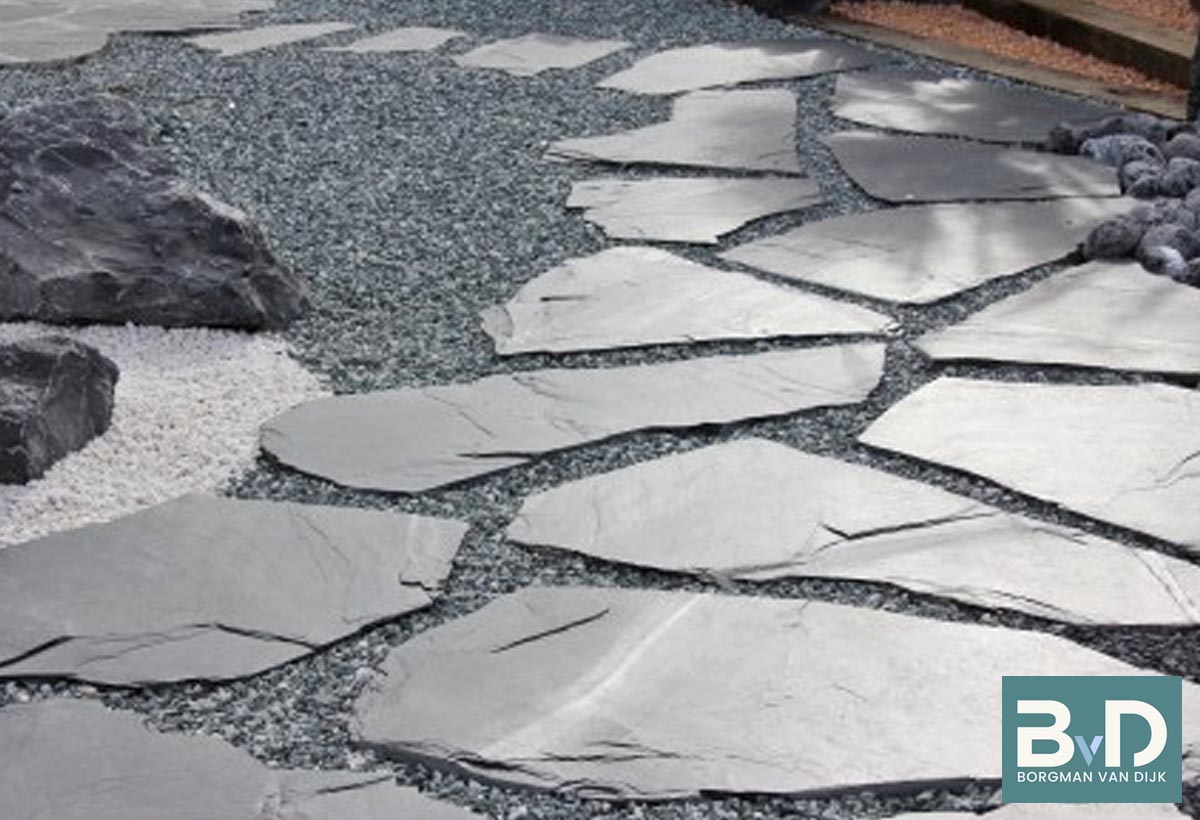 Borgman van Dijk heeft het grootste, mooiste en beste assortiment flagstones van Nederland. Tevens bieden wij u de scherpste prijzen inclusief btw. De Mystic Black flagstones zijn mooie stijlvolle leisteen flagstones mat zwart / antraciet van kleur afkomstig uit Spanje. Deze prachtige leisteen flagstone is qua kleur uniek in zijn soort. Een donkerdere flagstone is er niet te vinden. De flagstone Mystic Black Slate heeft een vrij vlak oppervlak en is vanwege zijn neutrale kleur makkelijk in de combinatie. De Mystic Black flagtone wordt veelzijdig toegepast. In de tuin als terras en pad. Als vloer in huis , tuinhuis en veranda. En prachtig als decoratieve muur en wandbekleding. Ook is deze flagstone makkelijk in onderhoud. Kortom een kwalitatief zeer goede flagstone voor een aantrekkelijke prijs.